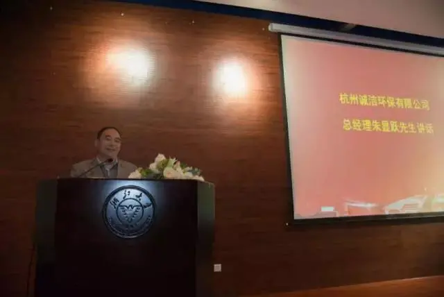 在随后的“思享汇”讲坛中,朱显跃先生继续分享了诚洁环保公司的若干故事,一次次奋斗在环保一线的故事,让我们明白了诚洁环保科技的进步离不开每一位员工的努力与付出,在场的师生都被他对诚洁环保的热爱与自豪所打动,也感受到他对新生环保人才的由衷期待与真诚祝福。