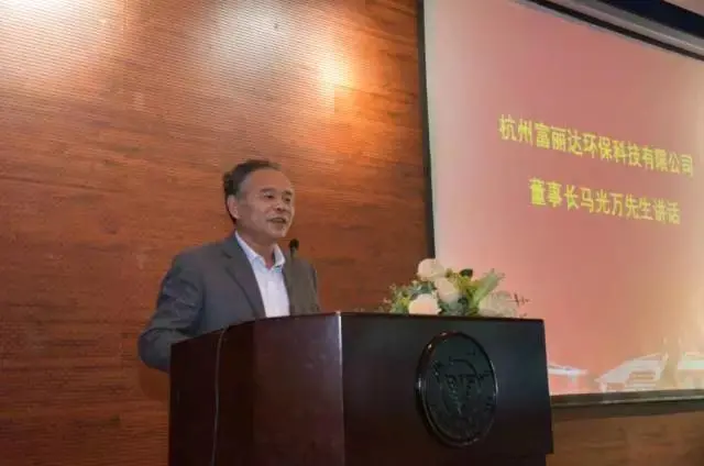 随后朱显跃先生和马光万先生分别代表了企业讲话发言,分别向同学们介绍了公司的基本情况并表达了对于此次环资学院与公司合作的支持和期待。马光万董事长首先介绍到,富丽达集团环保科技公司现拥有总资产200余亿元,员工近6000人,连续多年跻身中国民营企业500强、中国制造业500强。杭州富丽达环保科技公司是其集团下一家专注于工业污水的专业水处理环保公司,它以完善先进的工艺体系和严格的运行管理使其成为杭州市唯一一家经环保部门许可的废水经处理达标后无需纳管直排钱塘江的企业。同时他表达了此次环资学院与公司这种校企合作方式的大力支持,期望企校优势互补、工学结合,达到互利共赢。